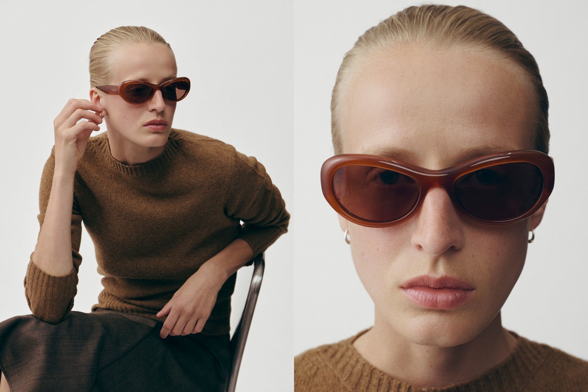 Made in Italy, the glasses meld materials – acetate and metal – with the Soeur colour identity: deep brown, mineral taupe, dense mocha, luminous anthracite and intense black. The attention to detail continues with a custom-designed case for each pair, accompanied by a cotton pouch and a branded care cloth.